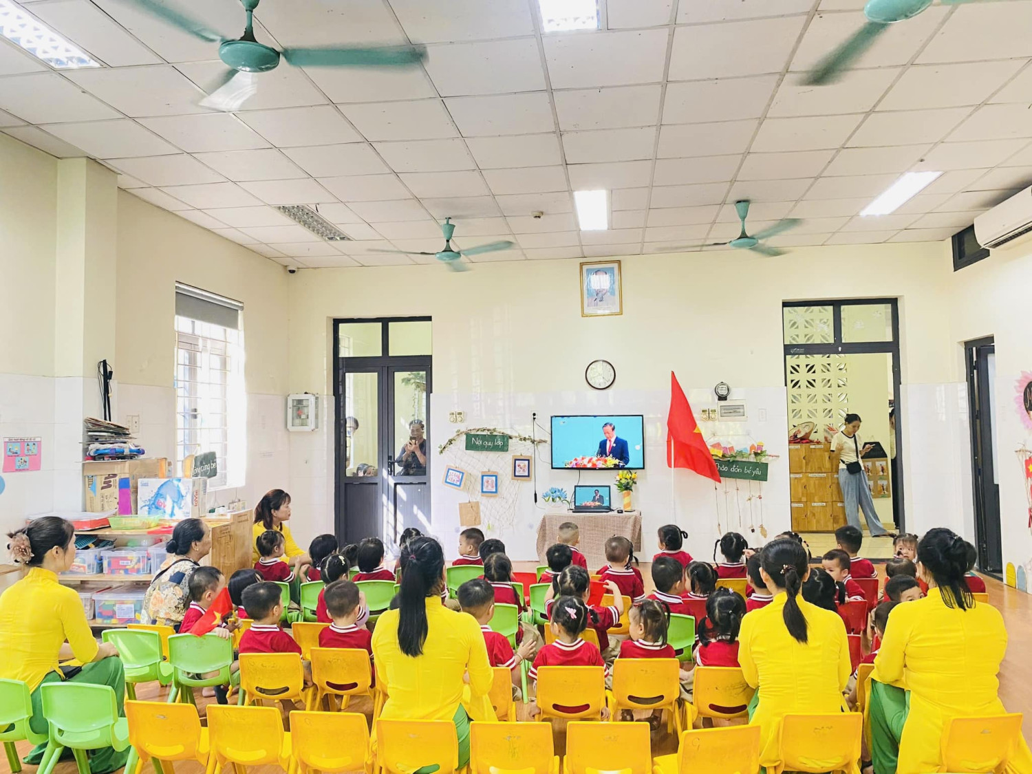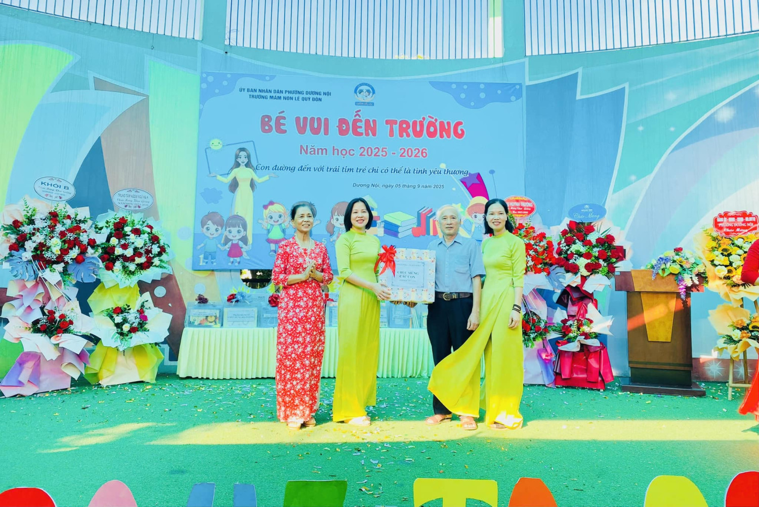Sáng nay Trường Mầm non Lê Quý Đôn đã tổ chức thành công Chương trình “ Bé vui đến trường” năm học 2025–2026. Chào đón các con một năm học mới một cách đầy yêu thương để lại những vòng tay ấm áp, những nụ cười trong veo của các cô giáo – để mỗi bạn nhỏ đều cảm nhận ngày đầu tiên thật đặc biệt và đặc biệt hơn nữa lần đầu tiên trong lịch sử, lễ khai giảng sẽ được kết nối trực tuyến tới toàn bộ các cơ sở giáo dục, từ bậc mầm non, phổ thông cho đến đại học và giáo dục nghề nghiệp, cả công lập và ngoài công lập. Điều này tạo nên một không khí khai trường đồng loạt, thống nhất và có ý nghĩa sâu sắc, thể hiện sự gắn kết của toàn ngành giáo dục trong bước chuyển mình mới. Tham dự chương trình có các đồng chí lãnh đạo phường Dương Nội: - Bà Lê Thị Kim Oanh- Trưởng phòng Kinh tế, Hạ tầng và Đô thị; -Ông Lưu Quốc Tuấn - Giám đốc Ban Quản lý dự án đầu tư- Hạ tầng; -Cùng các ông, bà đại diện cho Tổ dân phố 1 và TDP 2; - Các bậc phụ huynh thân yêu của 12 nhóm lớp; - Tập thể cán bộ, giáo viên, nhân viên nhà trường; - Các bé học sinh nhà trường. Chương trình diễn ra trong không khí tươi vui, rộn ràng . Cùng nhiều tiết mục văn nghệ đặc sắc do chính các bé và cô giáo biểu diễn. - Ngay sau chương trình: “Bé vui đến trường” năm học 2025-2026 các cô và các con sẽ về các điểm cầu bố trí tại các tầng để tiếp tục tham dự lễ khai giảng trực tuyến Lễ kỷ niệm 80 năm truyền thống ngành Giáo dục và Khai giảng năm học 2025-2026. Xin gửi lời cảm ơn chân thành tới quý phụ huynh đã luôn đồng hành và tin tưởng nhà trường! Chúc các bé sẽ có một năm học thật nhiều niềm vui, khám phá mới mẻ và những trải nghiệm tuyệt vời cùng bạn bè, cô giáo tại ngôi nhà Lê Quý Đôn thân thương!
