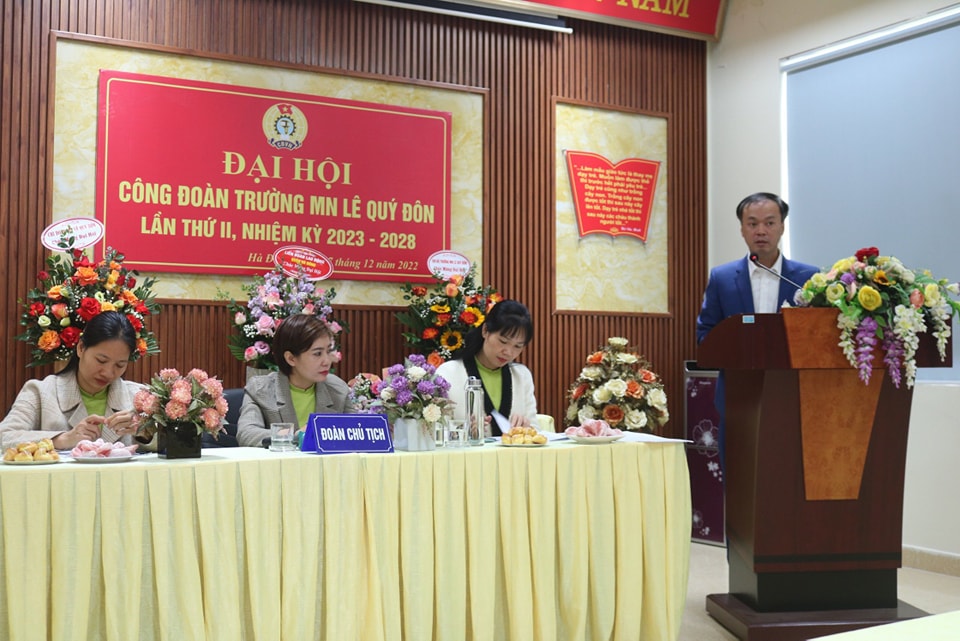 Về dự Đại hội công đoàn trường mầm non Lê Quý Đôn vui mừng được đón tiếp đ/c Đào Quang Huy – Phó Chủ tịch LĐLĐ Quận Hà Đông và đông đủ các đồng chí công đoàn viên nhà trường