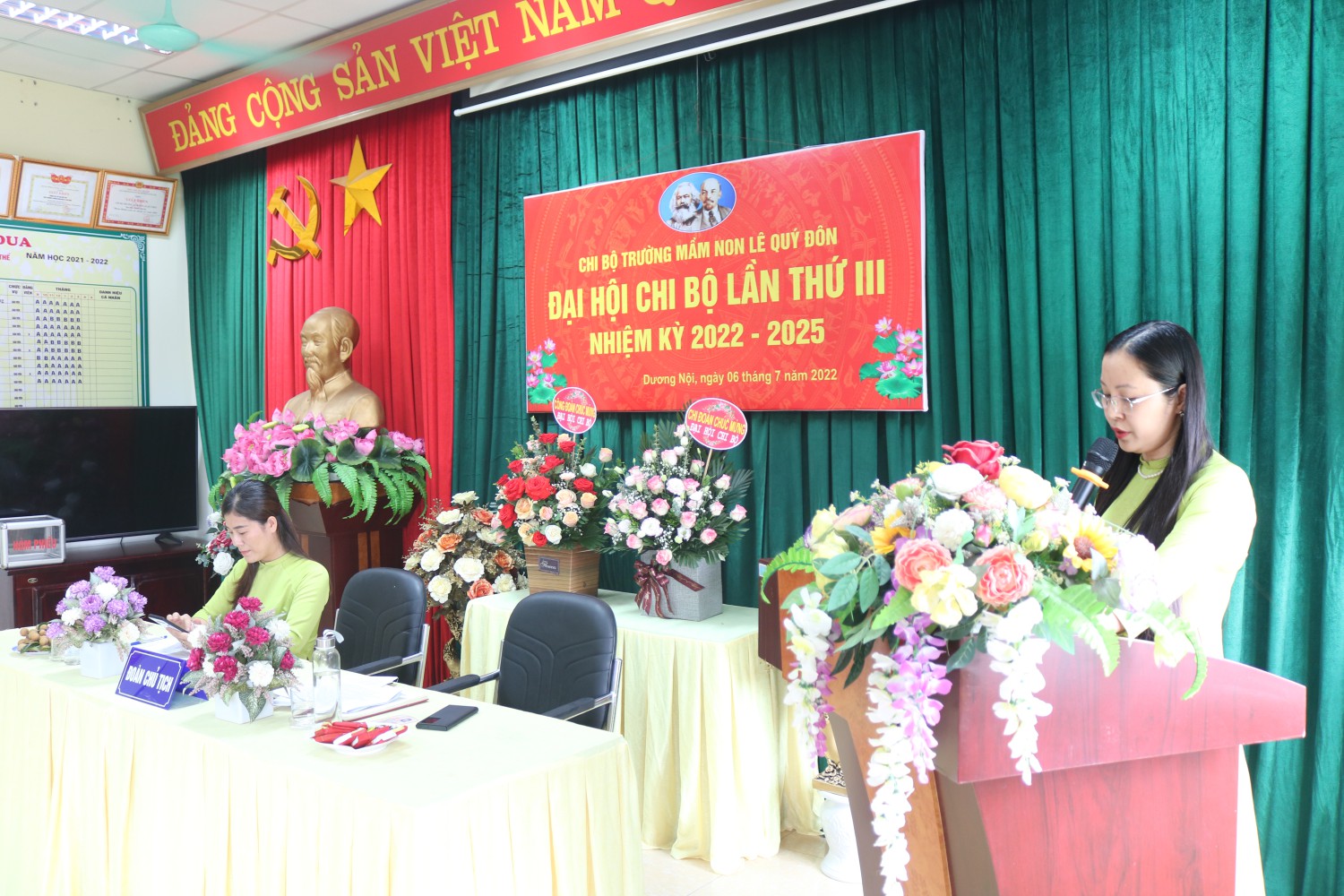 ĐẠI HỘI CHI BỘ TRƯỜNG MẦM NON LÊ QUÝ ĐÔN LẦN THỨ III NHIỆM KỲ 2022 – 2025