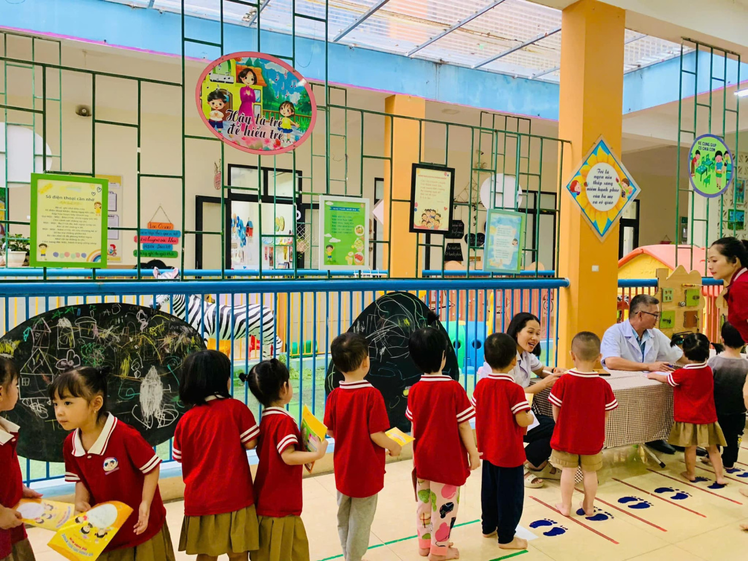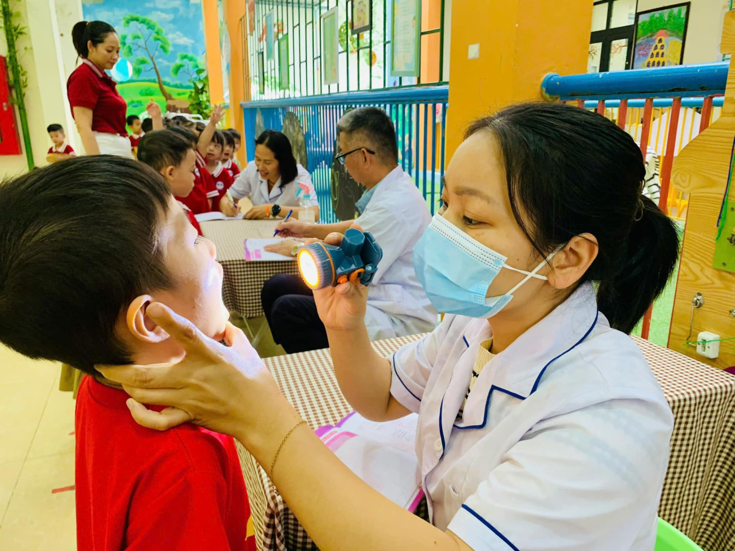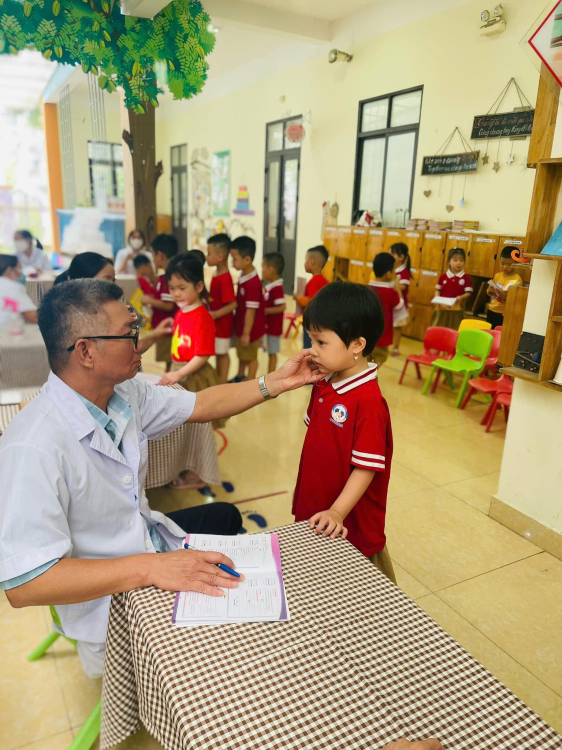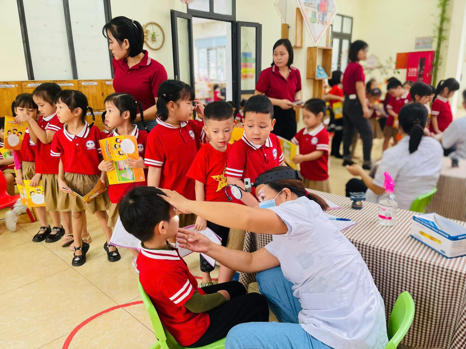 KHÁM SỨC KHỎE ĐỊNH KÌ CHO TRẺ TẠI TRƯỜNG MẦM NON LÊ QUÝ ĐÔN NĂM HỌC 2024-2025 Chăm sóc sức khỏe cho bé là một trong những nhiệm vụ luôn được chú trọng song song với việc giáo dục. Bởi giáo dục ở lứa tuổi mầm non không chỉ là dạy học mà đó còn là quá trình chăm sóc để trẻ có cơ thể khỏe mạnh, tiền đề cho sự phát triển trí tuệ và nhân cách Ngày 04/11/2024 Trường Mầm non Lê Quý Đôn đã phối hợp với Trạm y tế phường Dương Nội tổ chức khám sức khỏe định kỳ cho trẻ toàn trường với những nội dung kiểm tra: mắt, tai mũi họng, răng hàm mặt, da liễu,….. Nhà trường xin gửi lời cảm ơn tới Đoàn bác sĩ của Trạm y tế phường Dương Nội đã phối hợp để thăm khám sức khoẻ cho các con. Chúc các bé yêu luôn khoẻ mạnh, nhanh nhẹn, đi học chăm ngoan và hạnh phúc