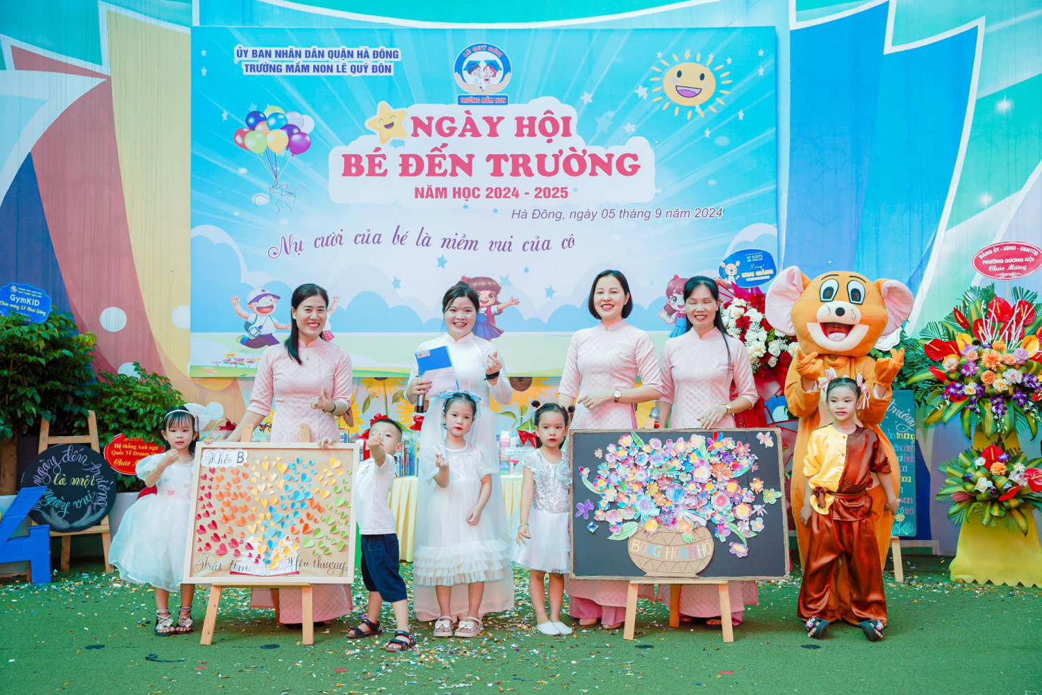 “NGÀY HỘI BÉ ĐẾN TRƯỜNG” Khi những cơn gió se lạnh của mùa thu tràn về, báo hiệu cho một mùa tựu trường mới lại về với những bạn nhỏ trên khắp mọi miền của tổ quốc. Mùa thu - Mùa khai trường - mùa của niềm vui khi cô trò và các bạn nhỏ được gặp nhau, cùng nhau đón 1 năm học mới. Hòa chung trong không khí vui mừng ấy, ngày hôm nay, trường MN Lê Quý Đôn tưng bừng phấn khởi tổ chức chương trình “ Ngày hội bé đến trường” với niềm hân hoan xúc động và thật ý nghĩa. Một năm học mới 2024-2025 mở ra hứa hẹn biết bao điều thú vị ở phía trước đang chờ đón các bạn của trường mầm non Lê Quý Đôn. Chương trình đã để lại nhiều ấn tượng đẹp và niềm vui cho quý phụ huynh các bé và cô trò của trường mầm non Lê Quý Đôn. Niềm vui, niềm hân hoan ngày khai trường đã thể hiện rõ trên những khuôn mặt đáng yêu của các bé trường Mầm non Lê Quý Đôn Thay mặt ban tổ chức, xin trân thành cảm ơn sự có mặt của các Quý đại biểu và sự đồng hành của các bậc phụ huynh, Trường mầm non Lê Quý Đôn sẽ tiếp tục là một địa chỉ tin cậy của các bậc phụ huynh khi trao gửi các con yêu của mình. Nhà trường luôn mong muốn tiếp tục nhận được sự ủng hộ đồng hành của các bậc Ph trong năm học mới để nhà trường và gia đình sẽ đem đến cho các con những điều tốt đẹp nhất. Xin kính chúc các quý vị đại biểu lời chúc sức khỏe, hạnh phúc, chúc toàn thể các cô giáo, các bé trường mầm non Lê Quý Đôn một năm học mới 2024 - 2025 luôn tràn ngập niềm vui.