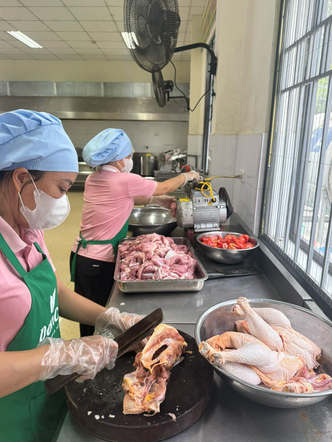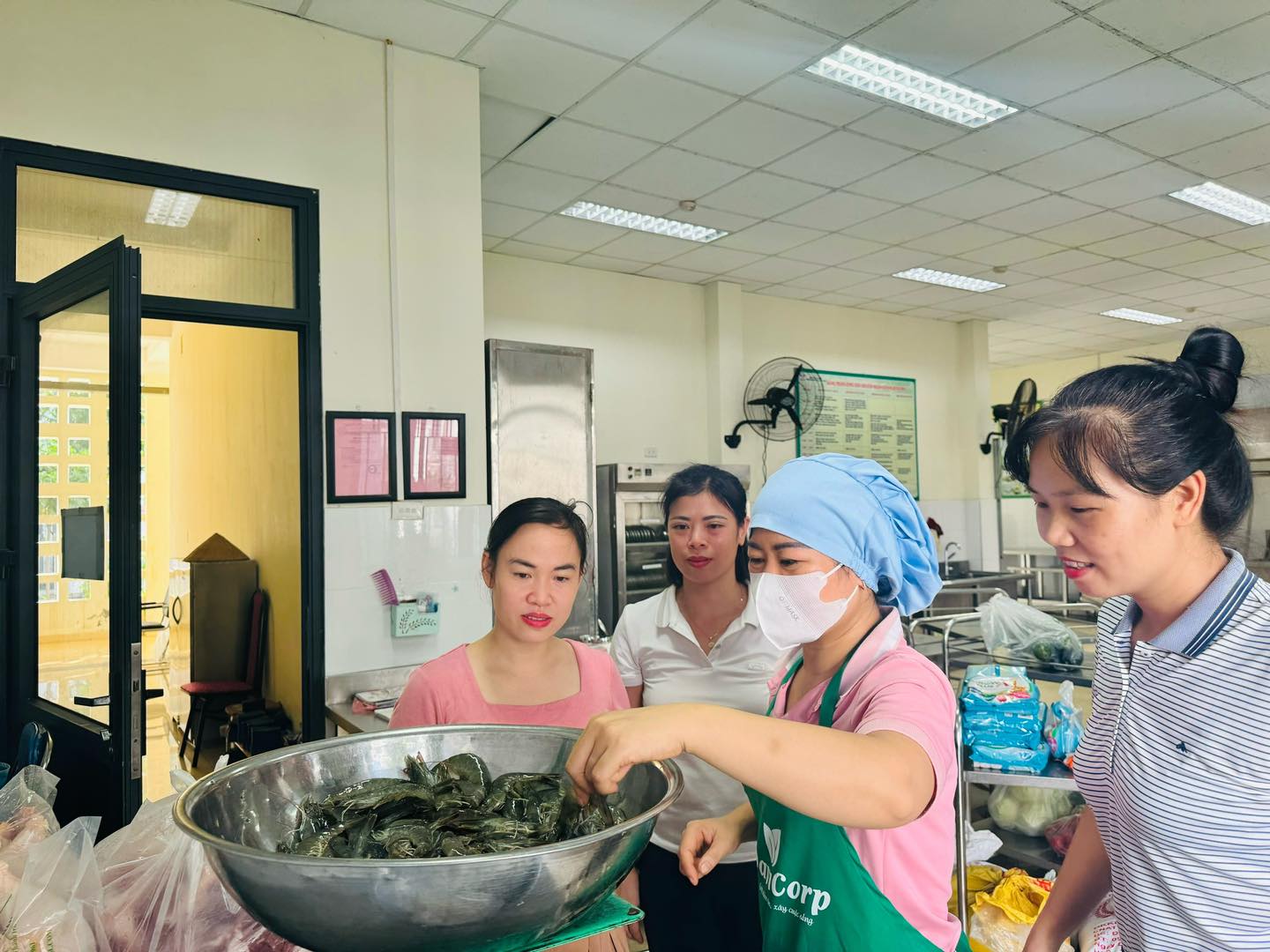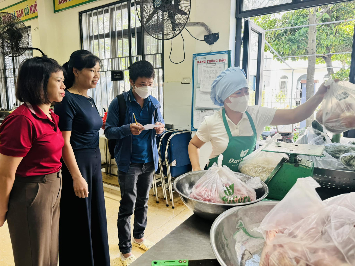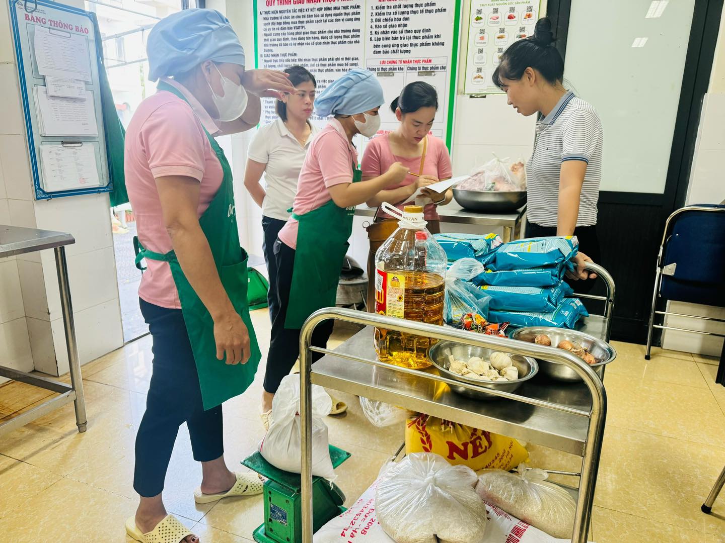 PHỐI HỢP VỚI PHỤ HUYNH HỌC SINH TRONG CÔNG TÁC GIAO NHẬN THỰC PHẨM TẠI TRƯỜNG MN LÊ QUÝ ĐÔN. Công tác An toàn thực phẩm luôn là nhiệm vụ quan trọng đối với mỗi nhà trường và cũng được các phụ huynh quan tâm hàng đầu. Đặc biệt là ở lứa tuổi mầm non, để đảm bảo cho các con có một sức khỏe tốt, cần một thực đơn có đầy đủ các loại thực phẩm và chế độ dinh dưỡng hợp lý. Nhận thức được tầm quan trọng của việc cần lựa chọn thực phẩm an toàn để chế biến các bữa ăn đảm bảo chế độ dinh dưỡng và An toàn VSTP trong nhà trường, trong những năm học vừa qua, công tác đảm bảo vệ sinh an toàn thực phẩm của trường Mầm non Lê Quý Đôn luôn được trú trọng và nâng cao. Cùng với quy trình bếp ăn một chiều, nhà trường đã kiểm soát quy trình giao nhận, chế biến thực phẩm rất nghiêm ngặt. Hàng năm nhà trường có kiện toàn Ban chỉ đạo giám sát bếp ăn bán trú gồm: Ban giám hiệu; Đại diện CMHS; Ban thanh tra nhân dân, Tổ trưởng tổ chuyên môn; tổ trưởng tổ ND-NT, văn phòng… Đặc biệt việc phụ huynh giám sát giao nhận thực phẩm của nhà trường luôn được thực hiện hàng ngày thường xuyên, liên tục trong các năm học. Buổi kiểm tra giao nhận thực phẩm diễn ra theo đúng quy trình một chiều, thực phẩm tươi ngon, đúng số lượng, đảm bảo chất lượng, vệ sinh an toàn thực phẩm. Toàn bộ thực phẩm được đóng gói cẩn thận, có đầy đủ tem nhãn, ngày sản xuất, hạn sử dụng, …..