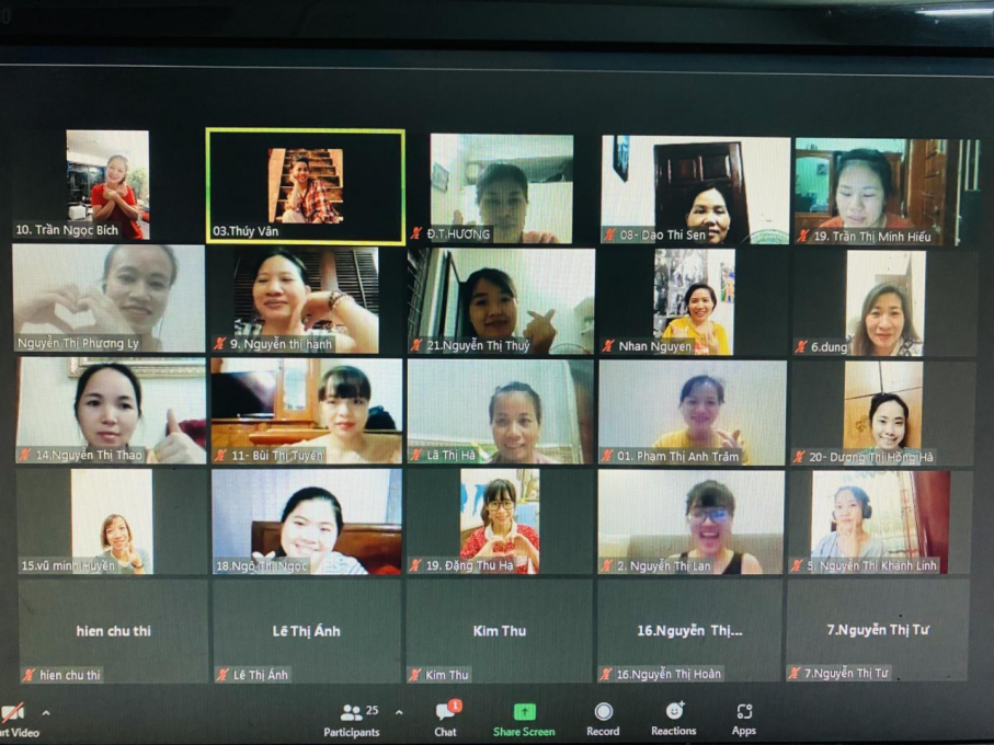 Buổi tập huấn kéo dài trong 6 buổi với 6 nội dung bồi dưỡng khác nhau. Với sự giảng dạy nhiệt tình và tâm huyết của cô giáo Nguyễn Thị Ly, cùng với tinh thần hăng say học tập của các học viên, 100% các đ/c CBGVNV đã có được những kiến thức cơ bản về thao tác làm video, album ảnh, thiết kế bài giảng trên các phần mềm như CANVA, MOVE MAKER, POWPOIT, WORD…