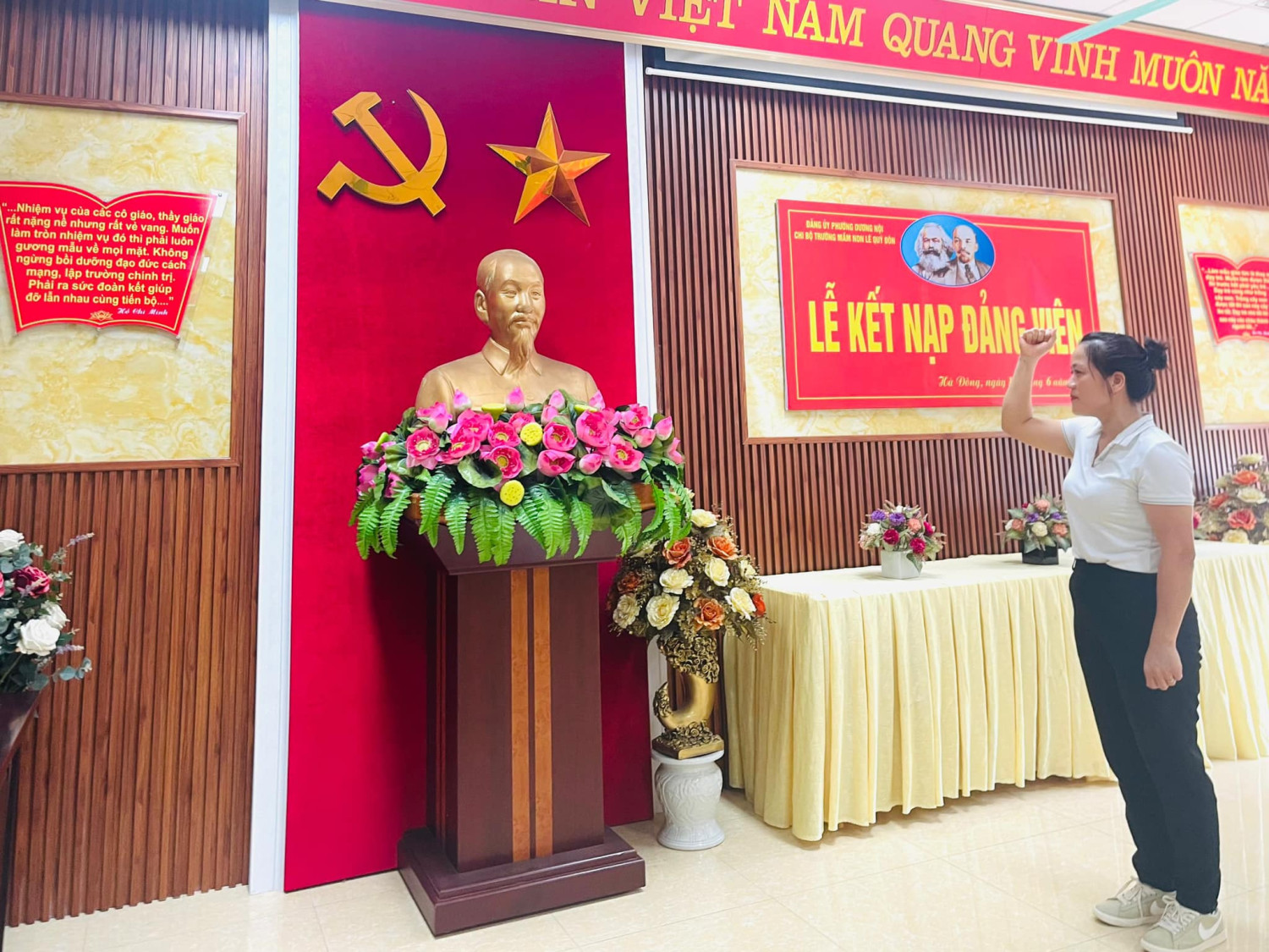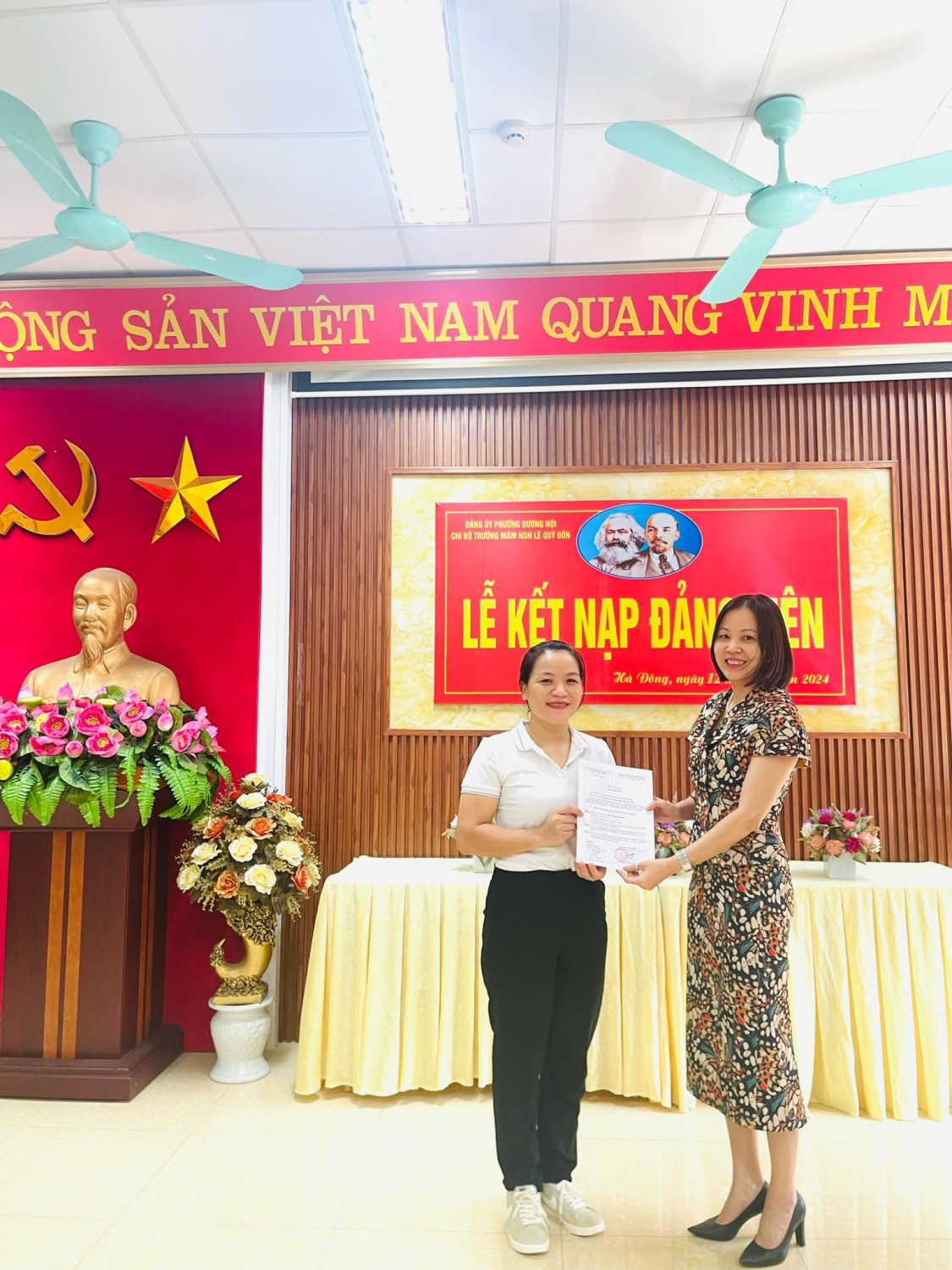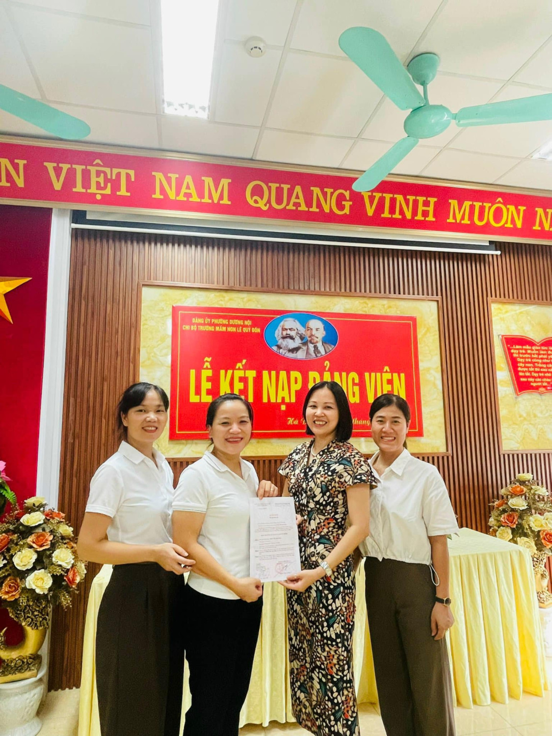 Tiếp tục thực hiện kế hoạch nhiệm vụ công tác phát triển Đảng của chi bộ năm 2024, Chi bộ trường mầm non Lê Quý Đôn vinh dự và vui mừng được kết nạp đồng chí quần chúng ưu tú là cô giáo Phạm Thị Anh Trâm đứng vào hàng ngũ của Đảng. Chúc đ/c luôn mạnh khỏe và nỗ lực phấn đấu, rèn luyện và đoàn kết cùng xây dựng Chi bộ MN Lê Quý Đôn luôn vững mạnh, hoàn thành tốt các nhiệm vụ được giao.